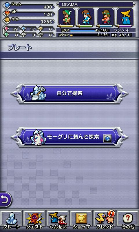 另外,職業角色也可在任務外取得,玩家可從板塊(プレート)進入,進入後可看到板塊礦區跟 PICTLOGICA(ピクトロジカ),觸碰板塊礦區後就可選擇自己探索或者交給莫古里探索,自己探索一次之後必須經過一段時間才可再次探索,而莫古里探索只需要付費道具即可進行。