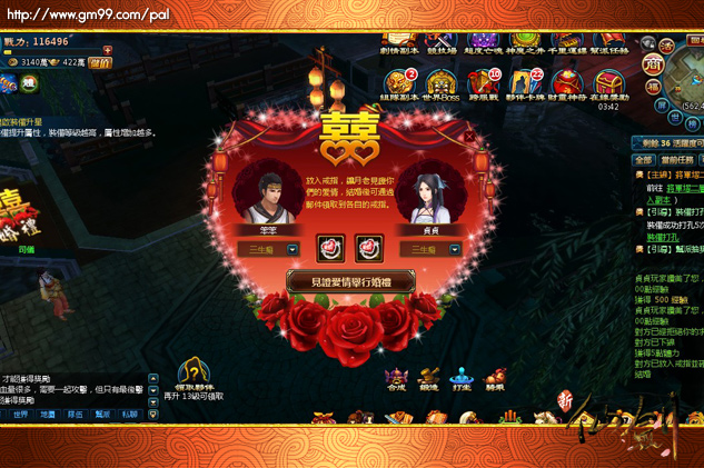 根據結婚流程,購買完婚戒後自然是要趕緊到月老處提親!少俠可在與月老交談中進入「我要結婚」介面選擇求婚對象,在對方確認後,情侶雙方便可紅線綁定,前往司儀處申請舉辦婚禮,讓親朋好友見證兩人愛情。