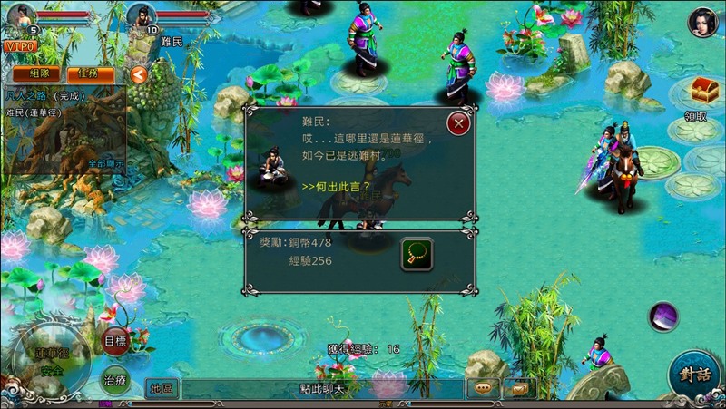 離開仙靈島後在道路上就能看到第一個任務NPC:難民,與他反覆的對話後,可了解目前神州大陸上的人民均遭到政府軍的欺壓,而我們將扮演英雄的角色來拯救《