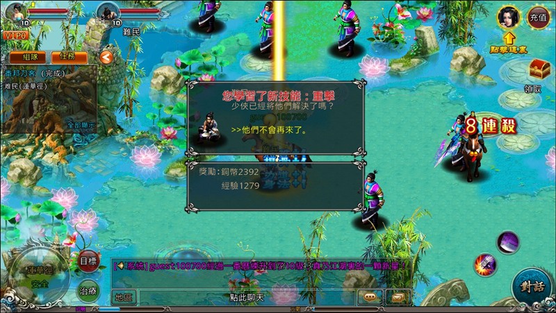 解決完神州的第一件任務後等級就會落在10級左右,只要依著任務的引導及走向,等級與系統功能也逐步開啟,玩起來真的非常輕鬆且有趣,是相當容易上手的一款遊戲呦~