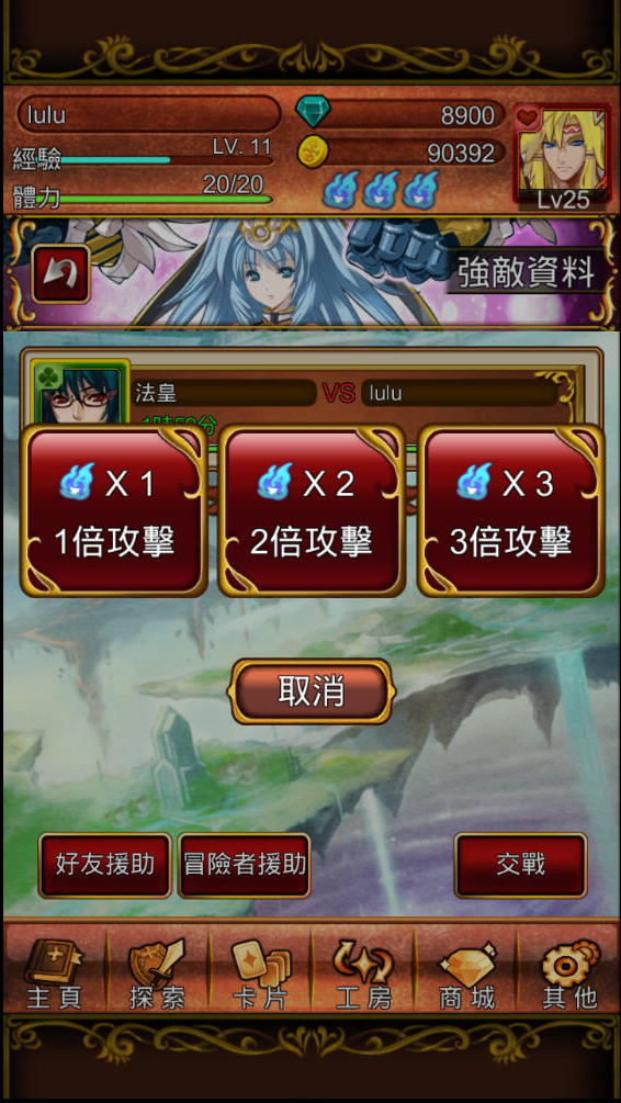 強敵來襲出現後在一定時間內可與其交戰,不過需消費戰鬥力才行
