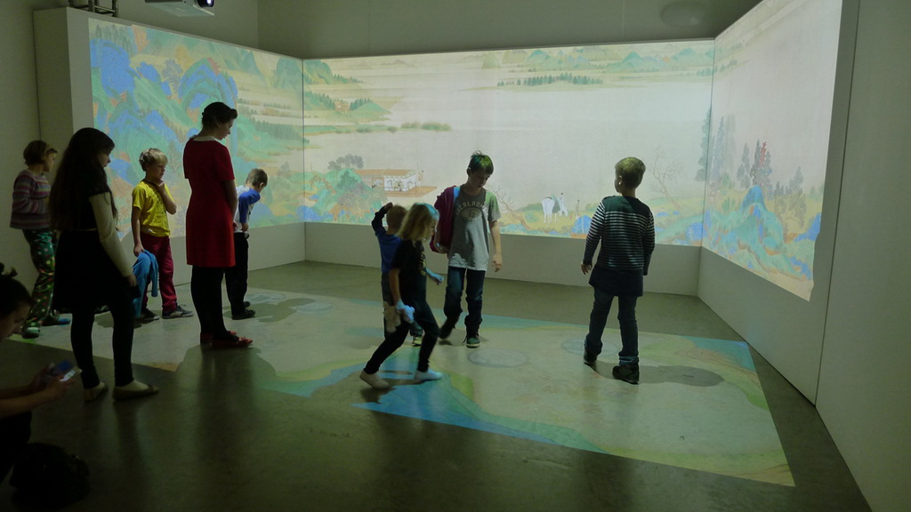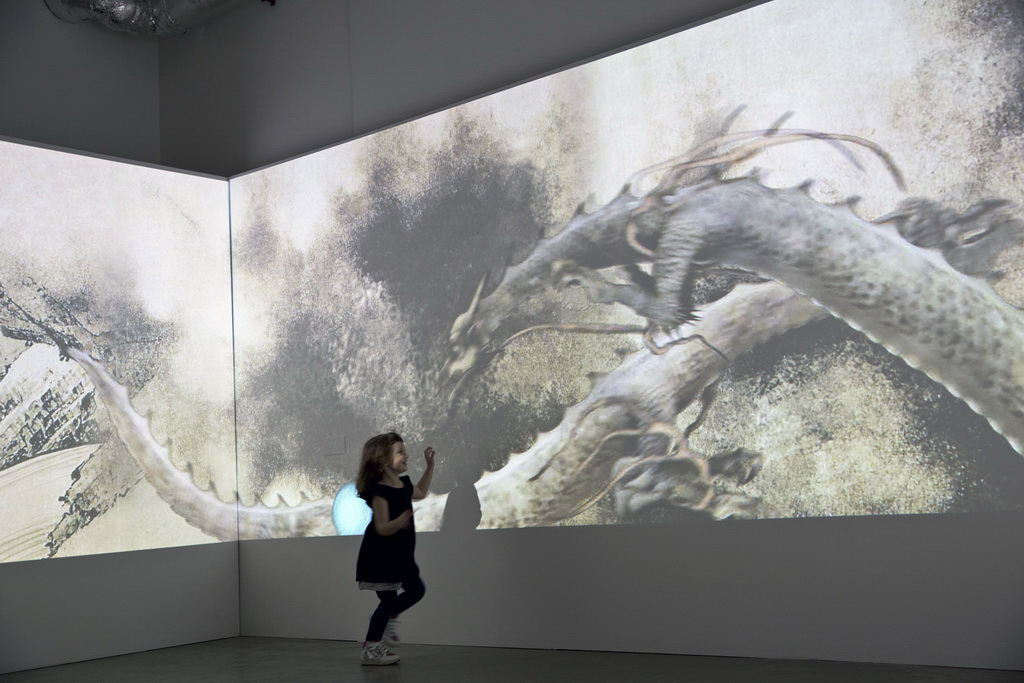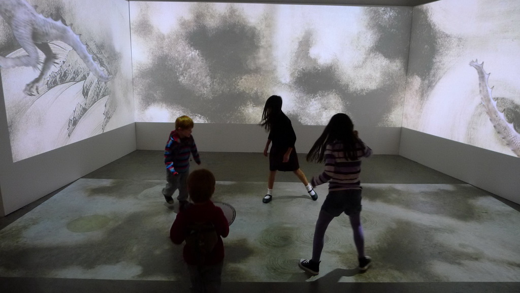 頑石創意也受邀在 V&A 博物館內的賽克勒中心(Sackler Centre)特別打造數位互動專區,將宋朝陳容的「九龍圖」(美國波士頓美術館藏)和明朝仇英的「潯陽送別圖」(美國 Nelson-Akins美術館藏)兩幅畫作變成超大型互動式數位作品,兒童不僅可以追逐龍珠嬉戲並驅動大型投影九龍動畫;更可以透過趣味的著色遊戲合力完成仇英的青綠山水作品;此外,結合白居易詩句的優美互動動畫,以及結尾與畫中人物揮手互動設計,將文化教育與娛樂學習融合。