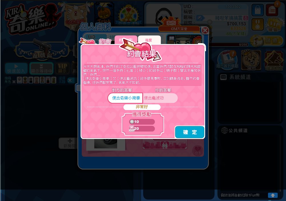 奇樂 Online》全新「情侶」功能,讓您實現眾裡尋他的夢想,更真實地呈現您與伴侶的關係,只要雙方成為好友,並同意情侶的邀請,即可以成為情侶,其後還可以進行約會拍拖,增進雙方的感情,將成為後續推出的「結婚」系統的第一步!