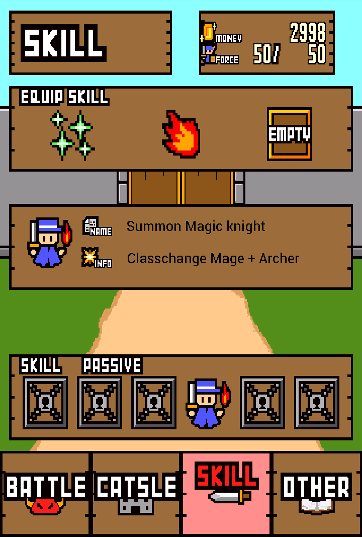 隨著遊戲的進行,將能夠解鎖更多樣化的職業單位,不過這些單位可不會直接出現在待命士兵的欄位中,而是要靠玩家將不同職業的單位進行合體,像是最早獲得的魔法騎士,就是將術士與弓箭手(怎麼不是戰士?)進行融合所誕生的單位。這些職業具有與原本截然不同的特性,只要活用應該就能創造出更多的戰術才是。
