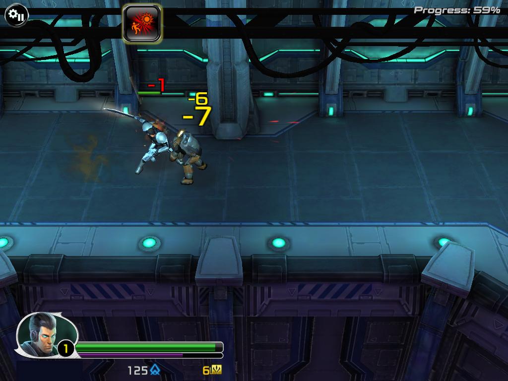以架構來說,本作是很標準的橫向即時格鬥闖關類型,採關卡制,玩家要操作主角闖蕩每一個太空迴廊,只要能打倒一路上出現的敵兵並到達關卡終點就算過關。