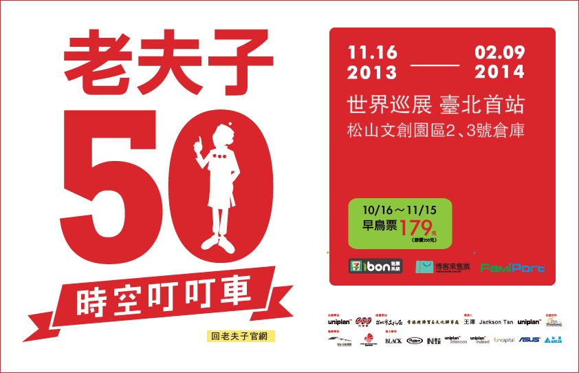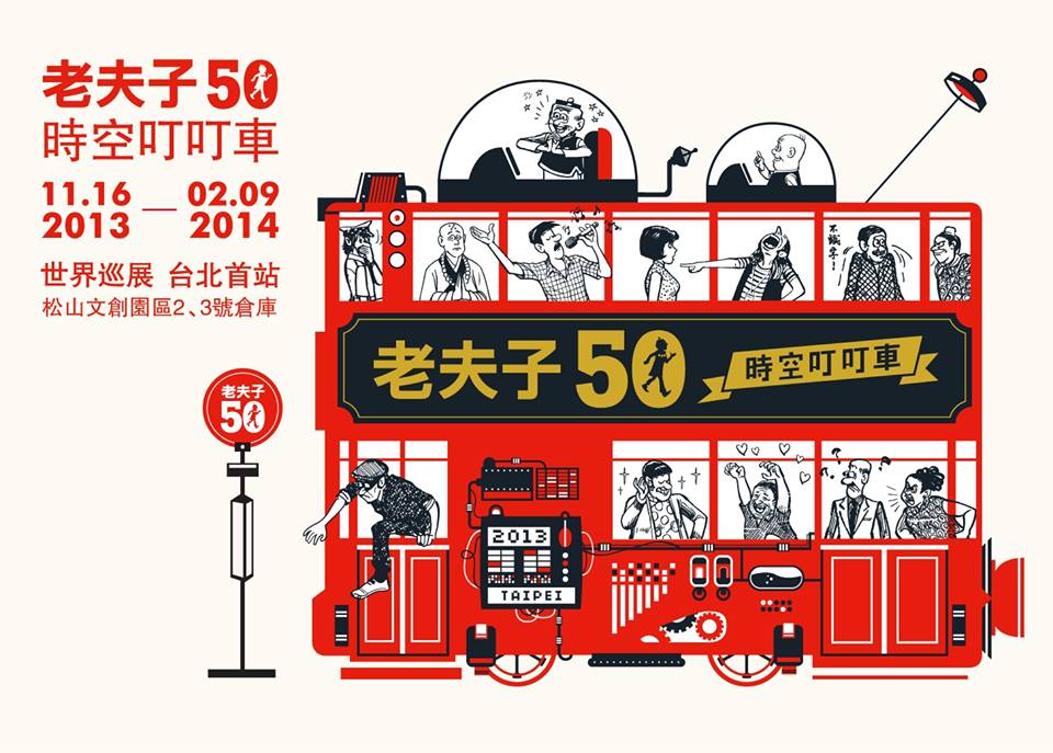 由 王澤創作的知名香港漫畫《老夫子》,將結合代表香港的交通工具「叮叮車」,於 11 月 16 日起在台推出「老夫子 50 時空叮叮車」特展,由老夫子駕駛復刻版香港叮叮車開進松山文創大街。