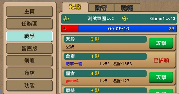 軍團戰爭可以強奪其他軍團的資源壯大自身軍團強度