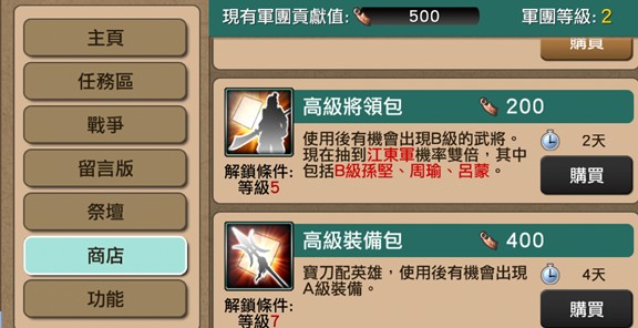 在新的軍團系統當中還建置了軍團商店的功能,團員只要參與軍團戰或者執行任務,就可以獲得軍團貢獻值,累積一定的貢獻值後,就可以前往軍團商店兌換稀有的道具,還有機會買到無法在一般商店購買的道具喔!!