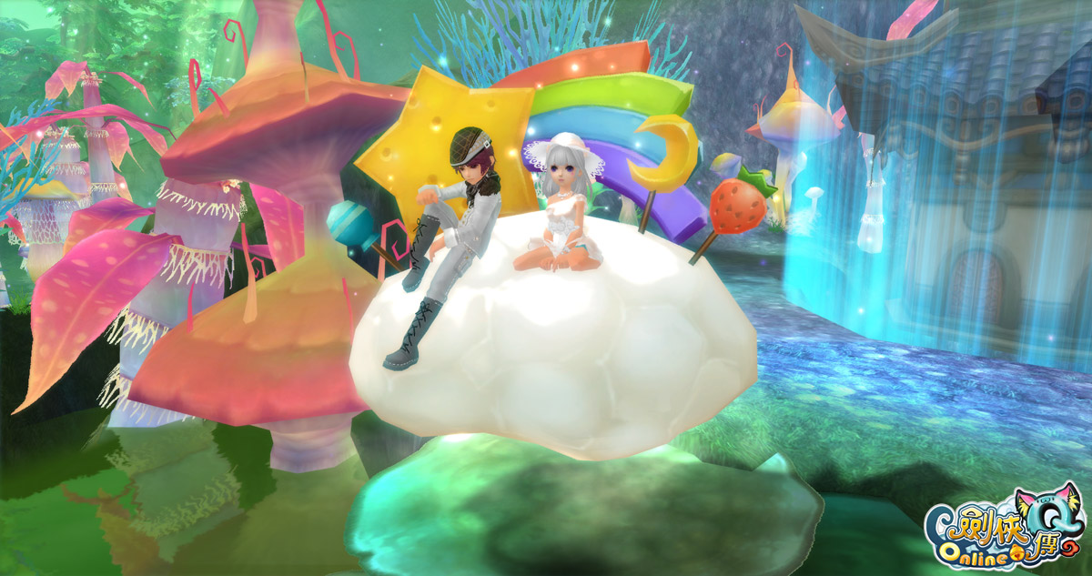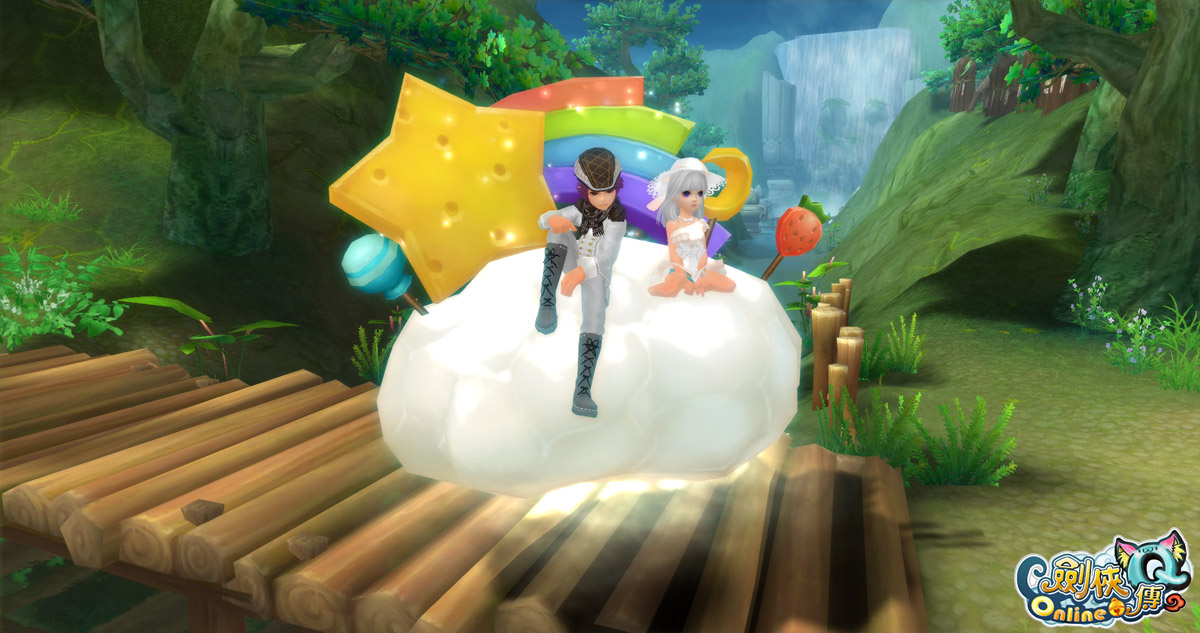 劍俠 Q 傳 Online》也推出全新「暮光愛戀套裝」、「水手沙灘褲禮包」、「水手比基尼禮包」、「蝴蝶結翅膀」與多項潮流配件!還有超隱藏版的雙人浪漫座騎「彩虹蜜糖雲」,請各位玩家千萬別錯過!一起加入《