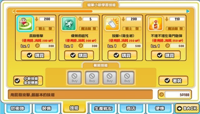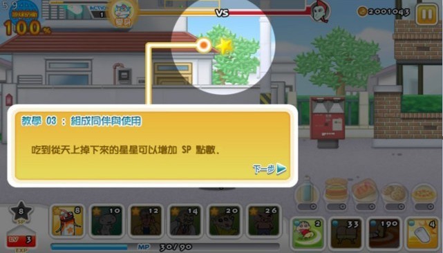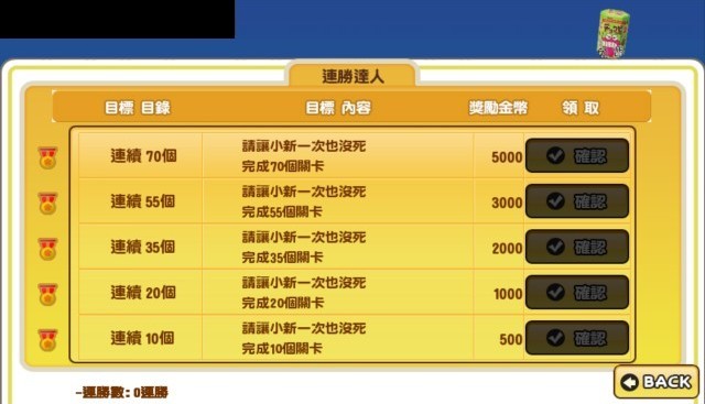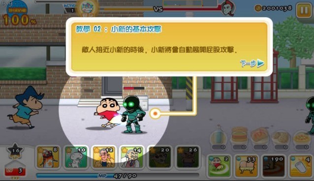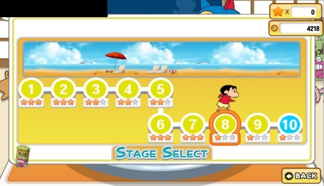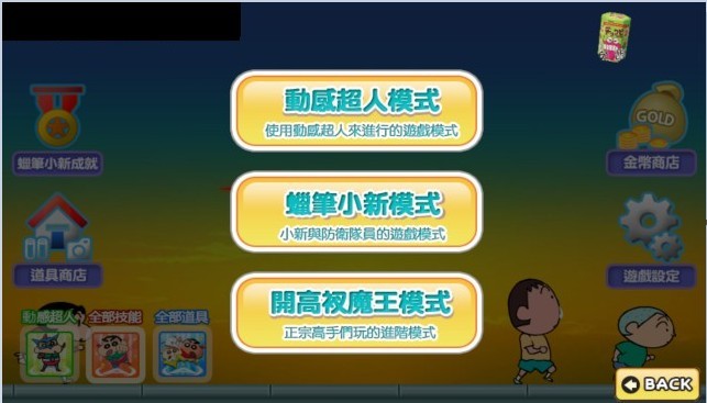 當小新體力用盡時就算挑戰失敗,玩家可選擇花金幣接關。(但金幣不是很好賺喔!)