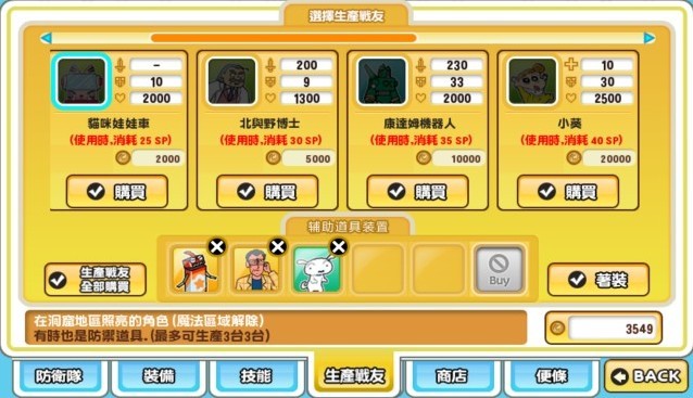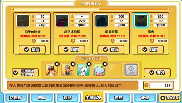 由於關卡會越來越難,所以購買新隊友,以及強化隊友就變得很重要了
