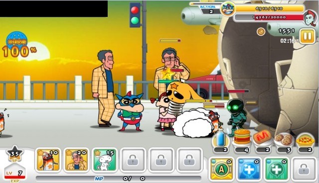 戰鬥中如果有危險,也可變身動感超人來進行戰鬥!雖然變身後的小新能力會變得很強,但因為有次數限制的關係,玩家必須慎重的決定