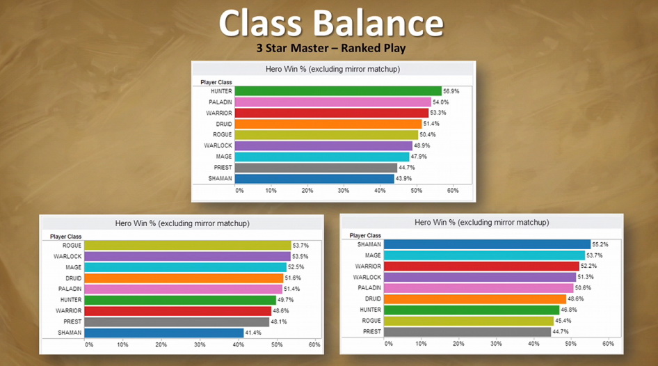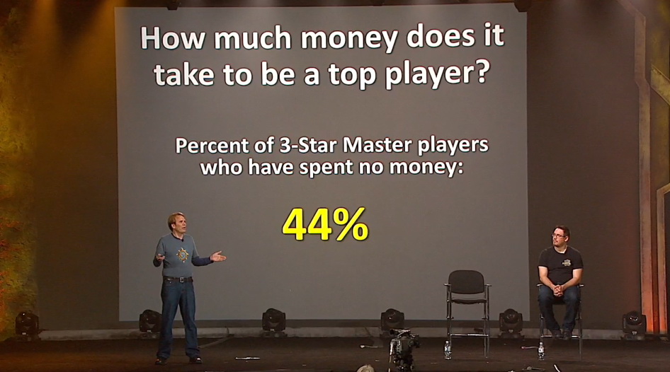 爐石戰記:魔獸英雄傳》Beta 測試,並表示 3-Star Master 玩家中有 44% 沒有花錢買卡包。此外,官方也公開目前職業勝率等相關數據。