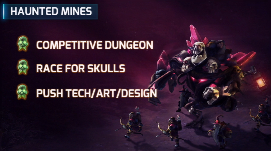 在 Haunted Mines 地圖中,玩家打贏守衛後便可以進入地下礦脈,礦脈地下會有小型的 Boss,蒐集頭顱會有強力的怪物出現在玩家城內,協助玩家攻打敵人。若玩家可以蒐集到更多頭顱則會召喚出強大的怪物加入玩家陣營。
