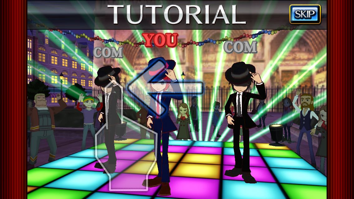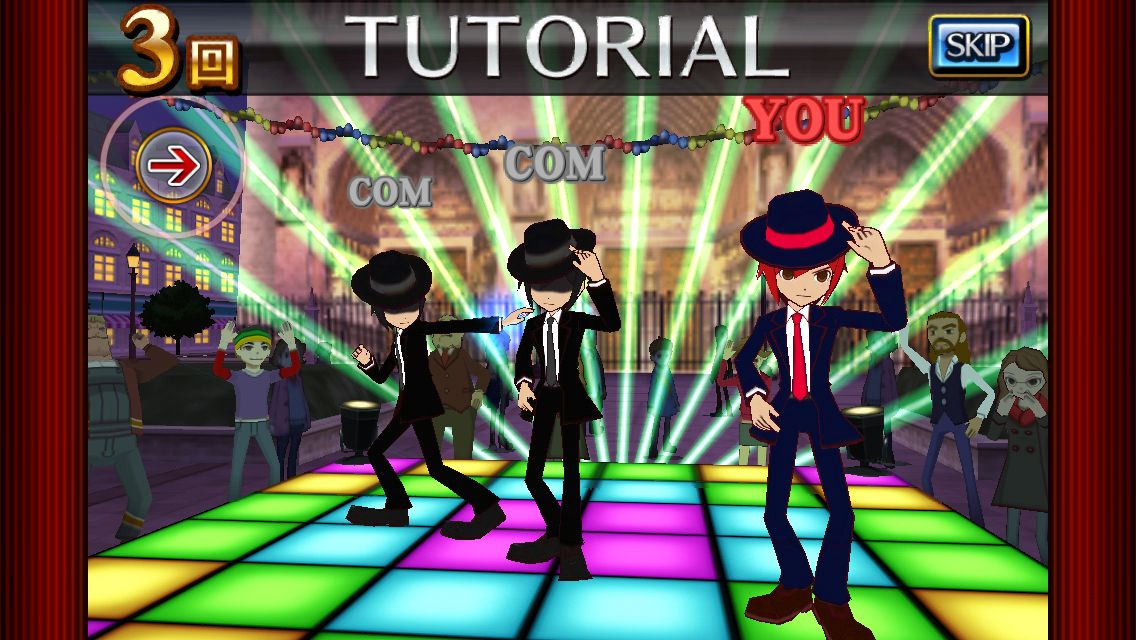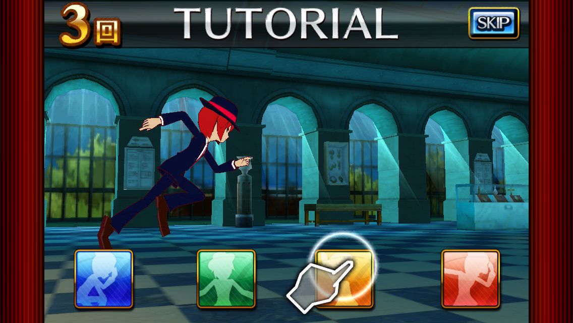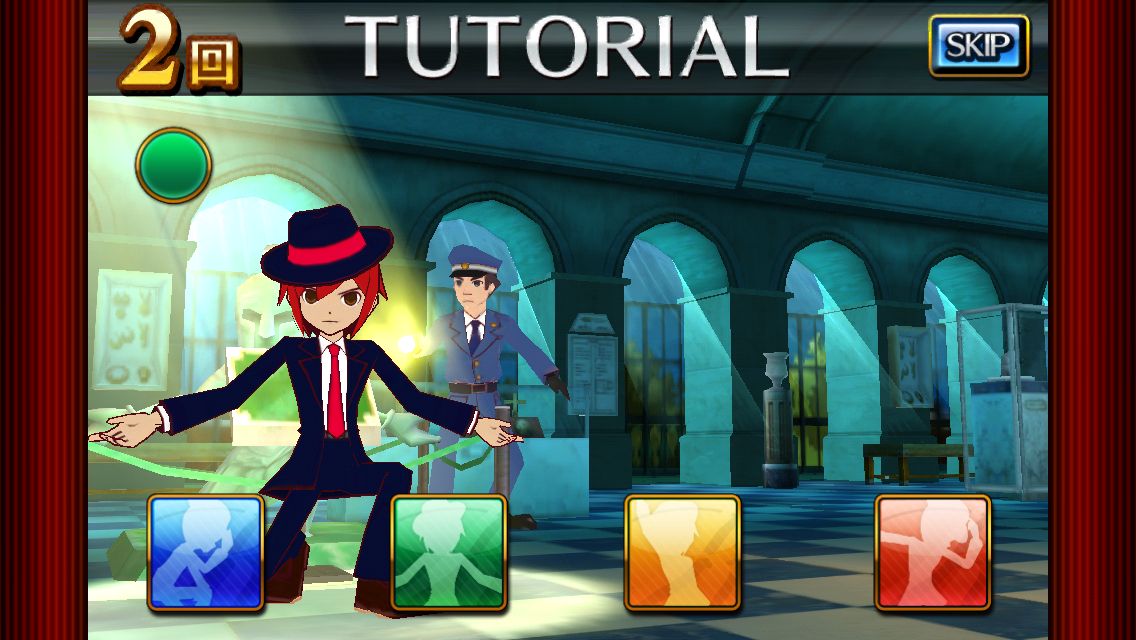 像是「舞蹈」任務的玩法,就是要需要玩家隨著節奏滑過畫面,讓主角擺出相對應的姿勢。而「潛入」的玩法就比較像是跑酷遊戲,玩家在奔跑時,畫面上會出現 4 種不同顏色的雕像,為了躲過警察的視線,玩家必須要在適當的時機按下對應顏色按鍵來偽裝成雕像。