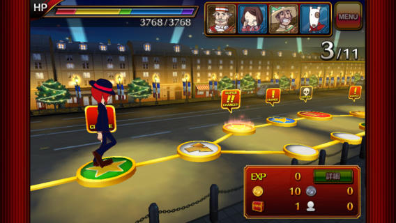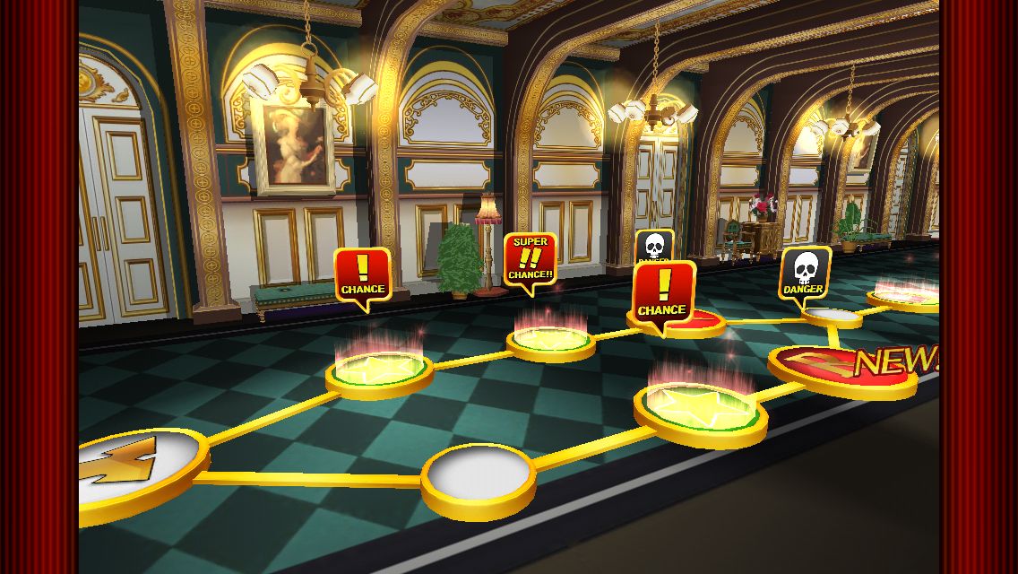 章節中的關卡是以像大富翁般「走格子」的方式呈現,每個格子都會有不同的事件發生。除了直接撿起道具、金幣之外,各類「節奏小遊戲」就是本作的重點了,遊戲中有著「舞蹈」、「入侵」、「戰鬥」或是「足球」等等不同的小遊戲會隨機在格子中出現。按照達成這些遊戲的成績的好壞,玩家就能獲得各種「夥伴」的卡片以及用來強化的道具。