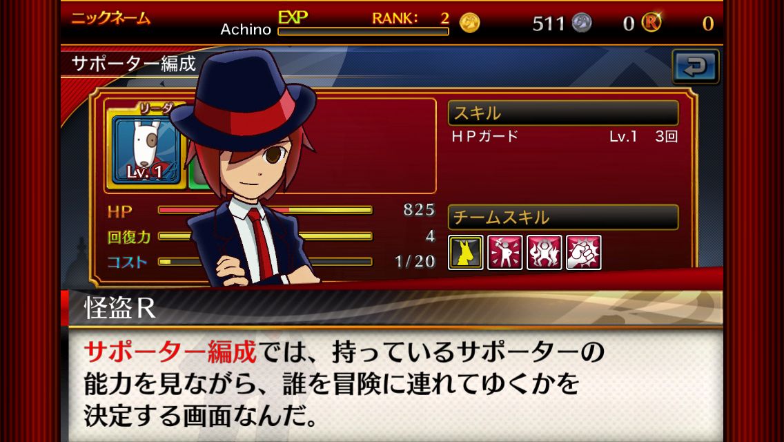 除了小遊戲的評價會影響到獲得的寶物好壞之外,在任務中要是玩家不小心失手了,主角「怪盜 R」的 HP 便會減少,而且隨著遊戲進度推展,難度提高,受到的傷害還會越來越大。這時候,你就需要各種「夥伴」的支援。
