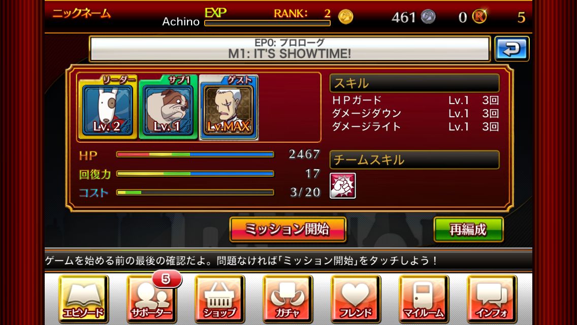 節奏怪盜 R Premium Live 》流程大致分為「攻略關卡」與「強化夥伴」這兩大部分。進入遊戲,選擇主畫面的「エピゾード(故事)」選項後,畫面右邊就會列出目前玩家的故事進度,讓玩家選擇想要進行的章節來遊玩。