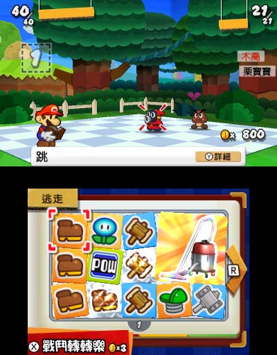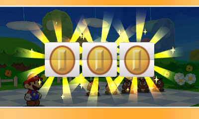 用在關卡裡撿到的金幣使用戰鬥轉轉樂。只要轉到相同的圖案,便可增加一次可使用的貼紙數量,讓戰鬥變得有利。此外,根據轉到的圖案,也會有好事發生。