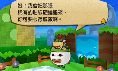 任天堂溥天公布掌上型遊戲機繁體中文版 N3DS 專用遊戲軟體《紙片瑪利歐 超級貼紙》(繁體中文版)之新遊戲介紹,以供有意購入本作的玩家參考遊戲內容。《紙片瑪利歐 超級貼紙》預定發售日 2013 年 12 月 6 日 / 建議售價 1,499 元。
