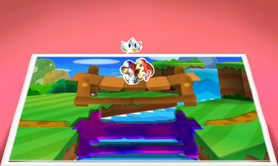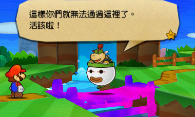 被庫巴 Jr.破壞的橋。用紙片變變變把橋貼回去,就可以過去了。