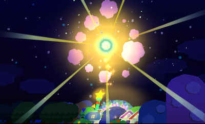 世界地圖。前進各個關卡,取得貼紙彗星的碎片即過關。