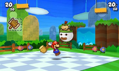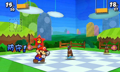 用跳攻擊有刺的敵人反而使自己受傷害、會飛的敵人槌子搆不到等,對付不同敵人要用不同的貼紙。對付某些敵人,只要巧妙組合貼紙,便能輕鬆打倒,因此戰鬥時需要考慮貼紙的組合。