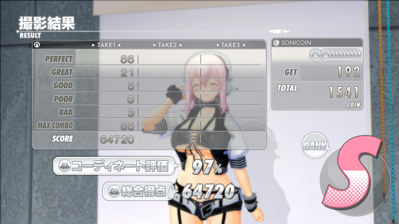 在 PS3 版中,根據攝影模式中所獲得的分數可以得到相對應的 Soni Coin 。當分數越高時所獲得的金幣數量也越多。而 Soni Coin 則是可以在視音速子為對手的「櫻花」(オウカ)所任職看板娘的「櫻花商店」中使用,主要可以用來購買新的服裝以及配件。而有些特定的服裝則是只能在櫻花商店中才有辦法換取到,在故事模式中是無法獲得,這一點是玩家必須注意的。為了讓音速子可以穿上更多可愛的服裝,一同發揮紳士的力量(高得分)為最終目標吧!