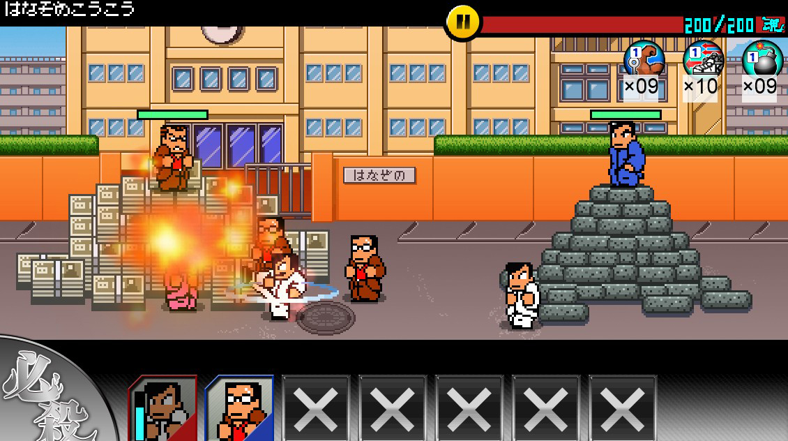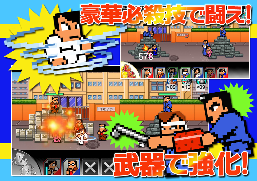 熱血硬派》系列為基礎的塔防遊戲。在宣傳影片中可以看到不良少年/少女逼近玩家的陣地,玩家必須用必殺技等來擊退敵人,
