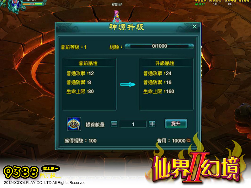 神源升級需要消耗對應的神源之力和一定數量的銅幣
