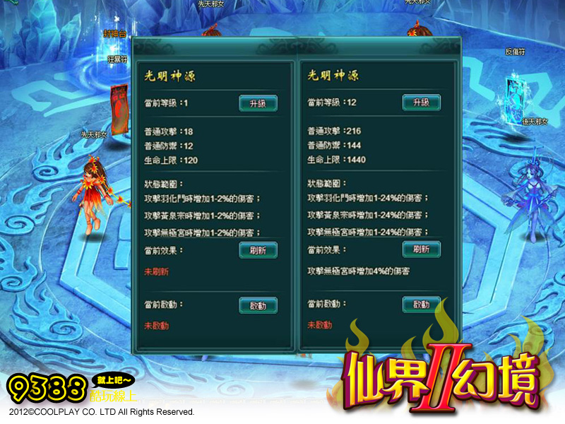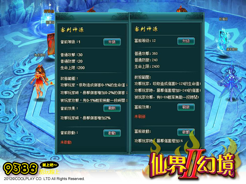 玩家一旦將神源啟動之後,將永久獲得屬性,且還能刷新強大BUFF狀態。神源等級最高為12級,神源等級提升後,還可提高神源屬性、並將BUFF效果數值往上提升上限。至於神源BUFF則需要刷新並啟動後才會生效,而神源刷新BUFF會需要消耗對應的神源之力或元寶,每次可免費刷新兩次。神源BUFF每次持續半小時,重新刷新並替換BUFF時間將會重新計算。三種神源BUFF都可以同時疊加生效。