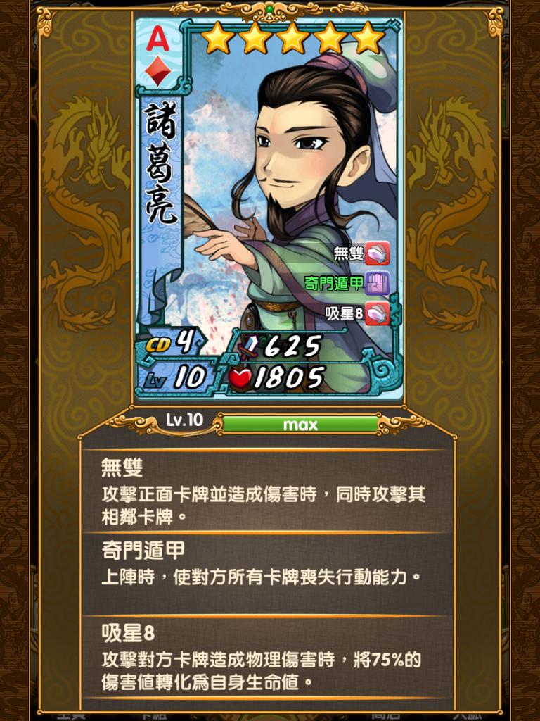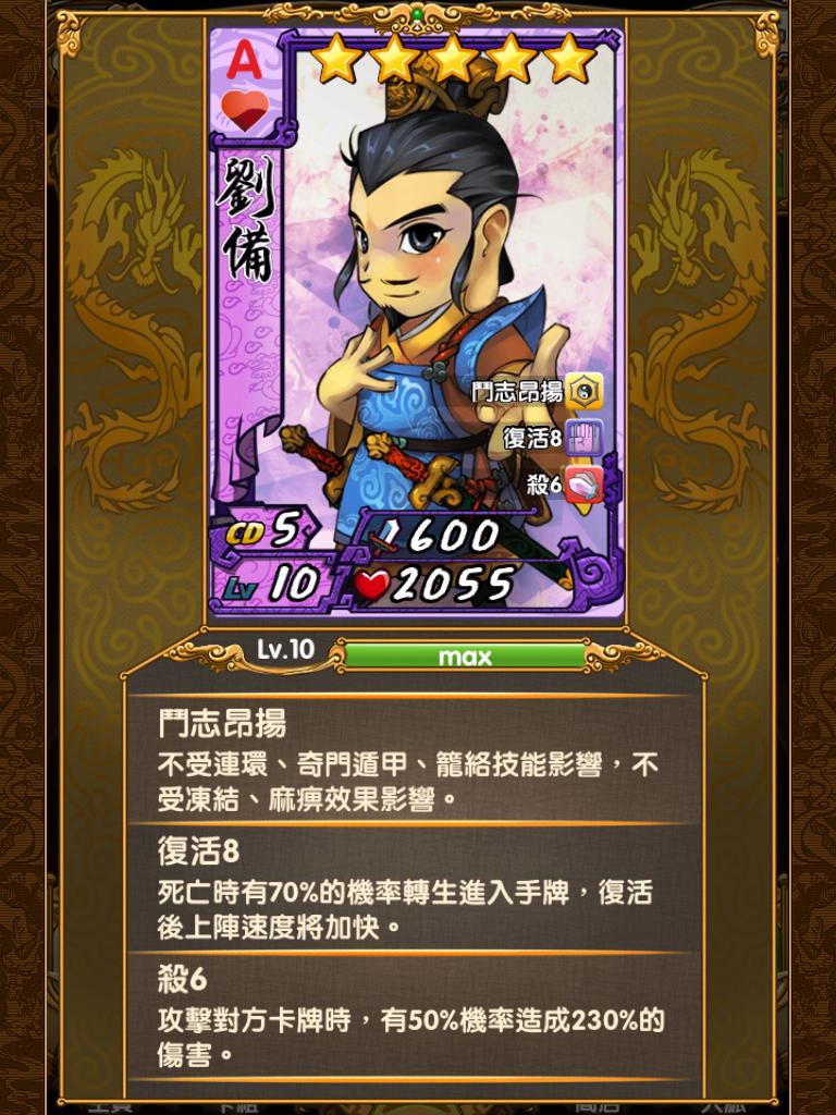 與三國歷史名將進行對戰,只要擊敗他們就有機會能夠將它們納入旗下陣容,是讓玩家能夠取得限定五星卡的新玩法。
