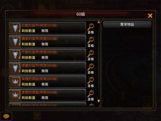 40級:金幣x20000、橙裝寶箱x1、強化打折卡x5、2級寶石箱x1、橙色寵物寶箱×1、50級禮包x1、PK橙甲徽章*1;