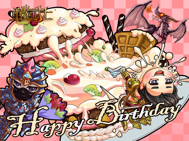 活動內容:今日是重裝踏入一週年生日的大日子!為了慶祝這盛事,商城會上架生日蛋糕寶箱, 趕快一起來和重裝武士慶祝生日吧!