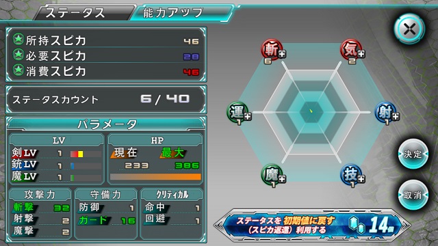 Stellacept Online》採用點數分配系統強化角色,當玩家完成任務或擊倒怪物時都會得到「星之精力」與「月之精力」,星之精力可提升角色的能力值,而月之精力則提升角色的武器系統等級。此外完成升階專屬任務可以幫角色提升軍階。