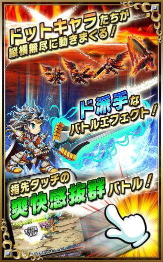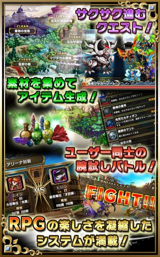 遊戲結合了許多日系 RPG 熱門遊戲的要素,除了觸控式的戰鬥和高達 200 個以上的角色可以養成以外,遊戲也內建村莊經營系統,冒險之餘玩家可以用戰鬥獎勵和收集到的資源來升級村莊建設,進而生產出更強力的武器和防具以及高級的強化物品。