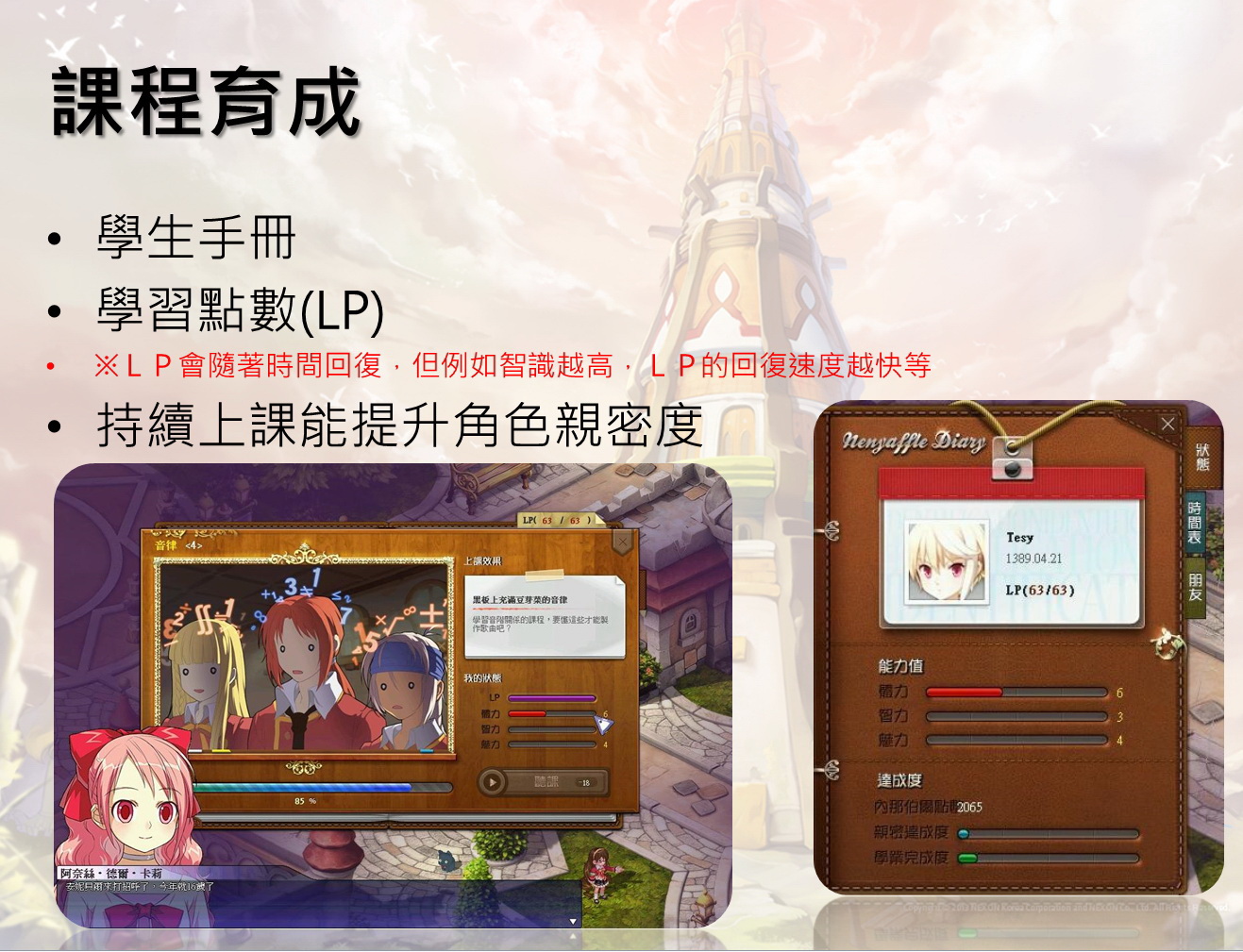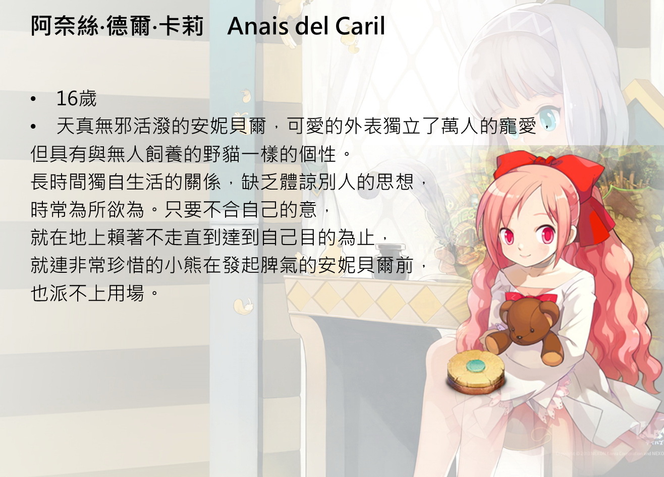 GameCyber 表示,遊戲在台公測時,將開放新角色阿奈絲,至於春季(約農曆過年前)將會開放新角色伊索蕾、CH3 EP1與山寺盧(Sans Ruria)地區。夏季時將會跟上日韓版最新資料,開放 CH3 EP2 與 Vanya 新角色等內容。