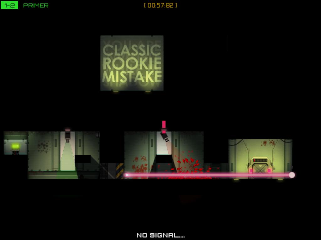 遊戲共有八大關卡,每一個大關卡都有他們各自的解謎特色。第一大關的解謎重點就在躲避監視器,被監視器發現的話就會啟動雷射陷阱,只要被這雷射輕輕碰到一下馬上就會變成血塊。