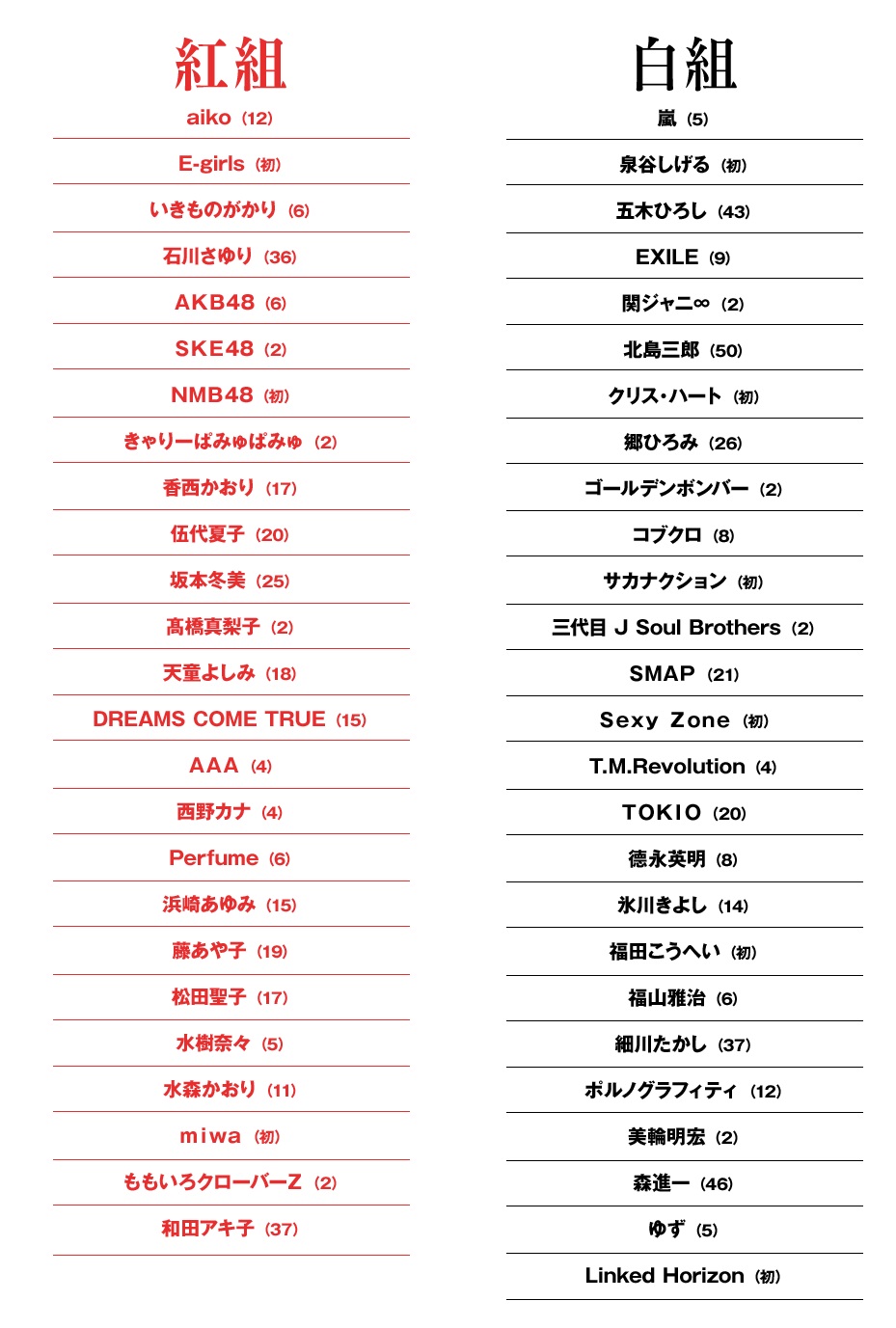 》片頭曲的 Linked Horizon 將首度於紅白演唱,而人氣聲優歌手 水樹奈奈則是第五度登上紅白舞台。
