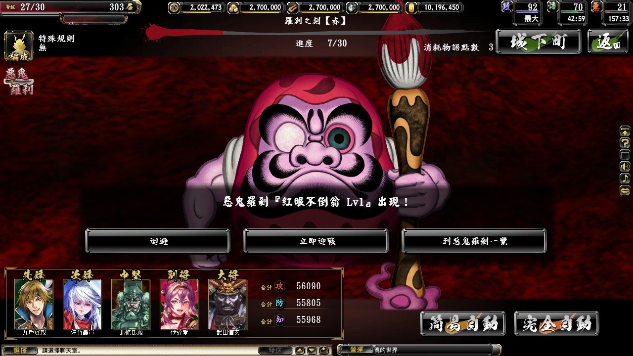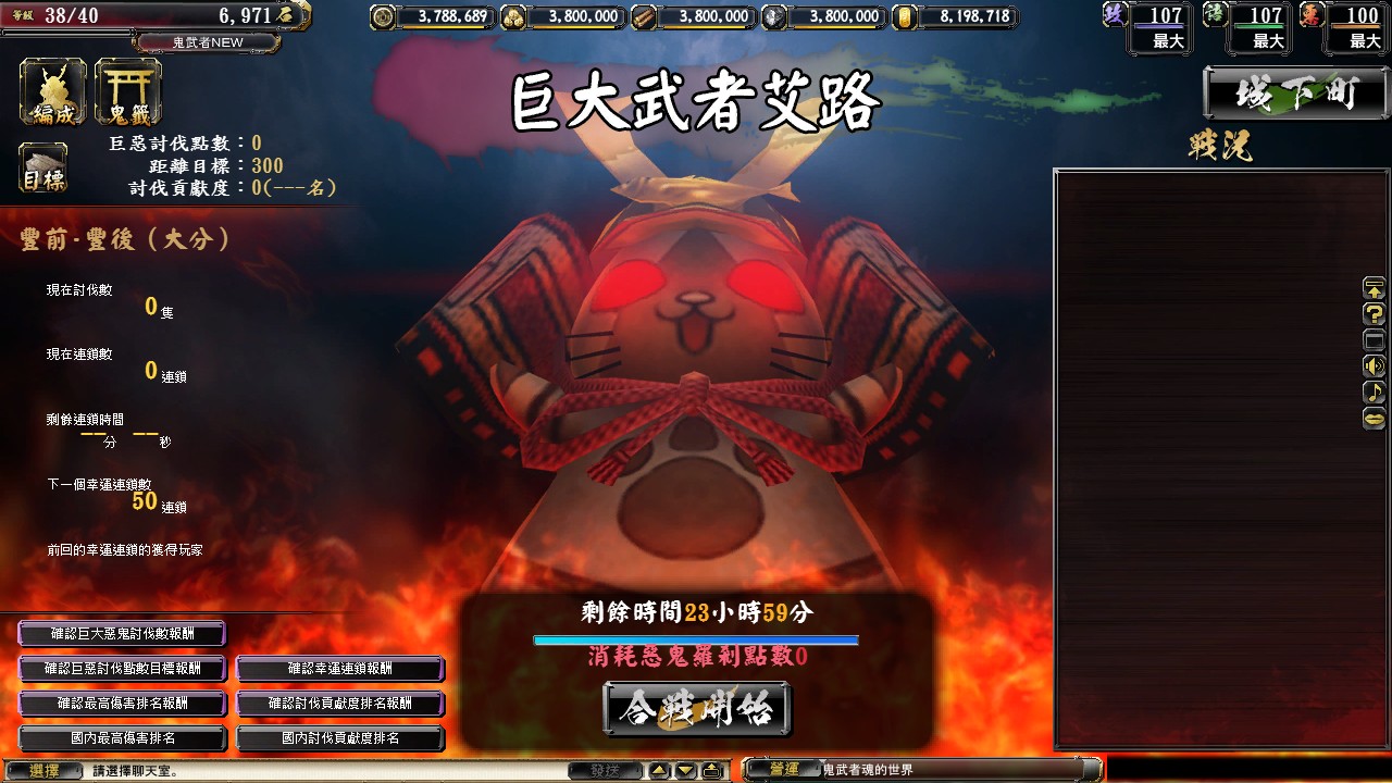 關東風雲版本中,最後一個系統「水上安南交易」也將在 11 月 26 日正式開啟。玩家透過「水上」的安南交易系統,可以隨機攜帶四位好友一同進行「安南交易」。若是四位好友知略都相當高時,則獲得豐富獎勵的機率就相對高,如果隨機配對的好友智略略低時,還可以再次進行篩選。但每日每個好友僅能協助一次安南交易,待每日凌晨 5 點後重置過後才可再度與該好友一同交易。與日本參天製藥合作的最後一波惡鬼羅剎「紅眼不倒翁」也將上線,想要獲得大型招財貓的玩家要加把勁囉!