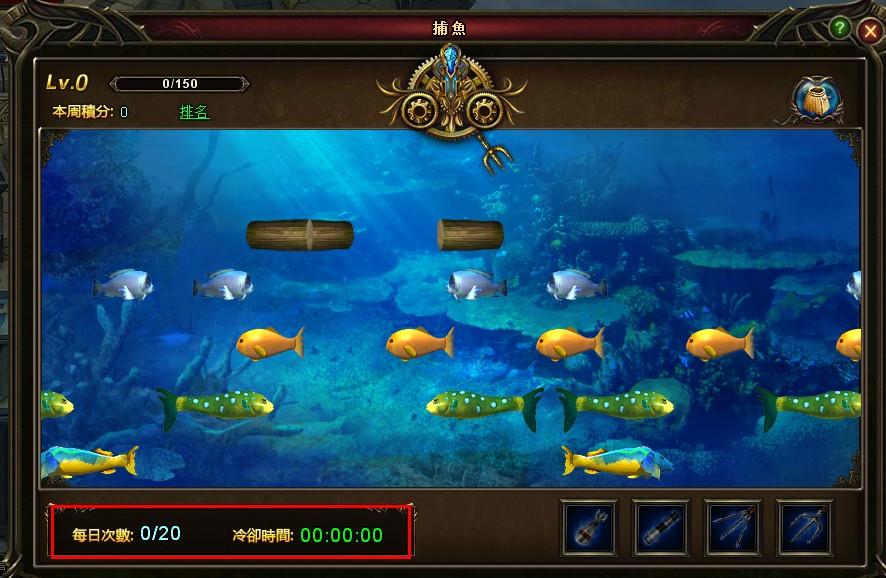 每天捕魚的次數為 20 次,成功捕魚才扣除一次次數,每天淩晨 5 點,捕魚次數將會重置。