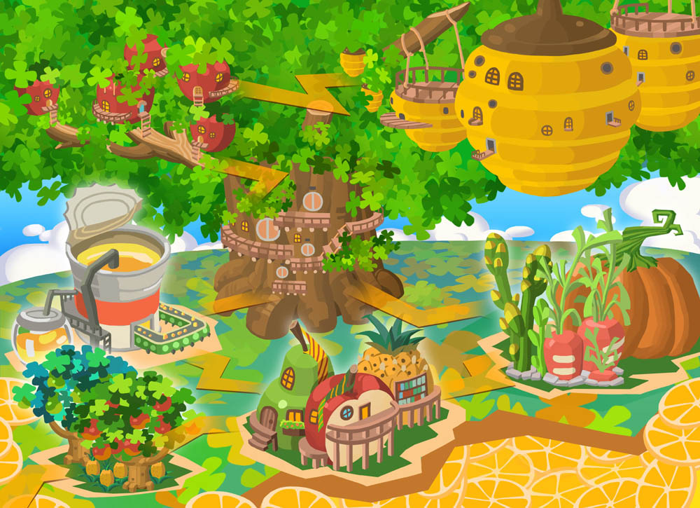 本次改版中充滿了巨大的蔬菜和水果,還有果汁所匯集而成的河流,包括長滿各式水果的「甜甜果林」、房子以蔬菜水果打造而成的「果香村」、栽種滿滿鮮嫩蔬菜的「翠翠菜園」、蔬果加工罐頭廠的「豐饒產地」、往天空樹的道路「枝枝道」、天空樹的枝幹「空林古徑」、蜂族的休憩所「嗡嗡休息站」7 大場景,以及墮落的