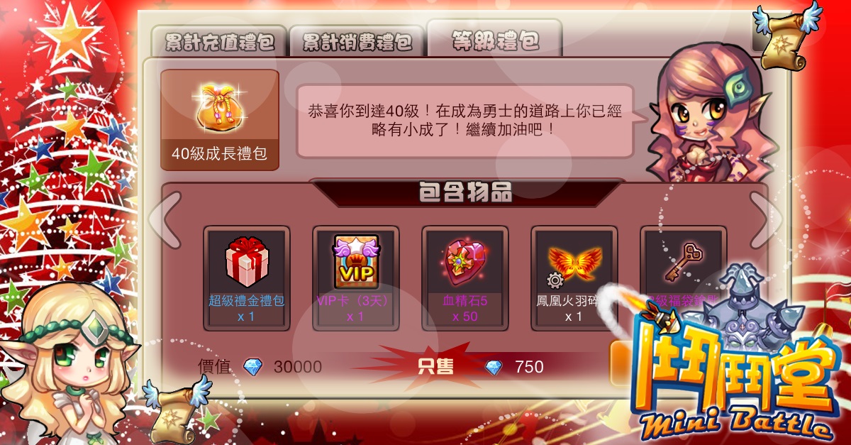 3. 升到一定級別可以購買升級獎勵的超值禮包,禮包內容及其豐盛,只可購買一次。