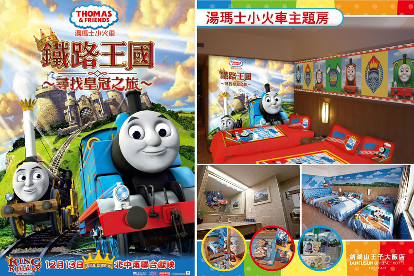 首先從12月起,以推廣動漫聞名的劍湖山王子大飯店也搭配電影推出全新「湯瑪士-鐵路王國主題房間」,全新的電影主題布置以及精美湯瑪士小火車紀念品,絕對會讓最愛湯瑪士的小朋友們興奮玩到睡不著!而即日起只要到遠東百貨,憑會員兒童卡就可免費兌換湯瑪士造型貼紙一份,消費滿額更有機會可以直接獲得限量的《湯瑪士小火車電影版 鐵路王國 尋找皇冠之旅》電影票。而如果沒有辦法到上述地點朝聖也沒有關係,現在起只要和手邊最新《湯瑪士小火車電影版 鐵路王國 尋找皇冠之旅》電影傳單、戲院看板、甚至是預告片等電影的圖像合照,再上傳照片到滿天星FB粉絲活動頁,就可以參加超豪華湯瑪士周邊抽獎,最大獎有機會可以免費入住湯瑪士主題房喔!