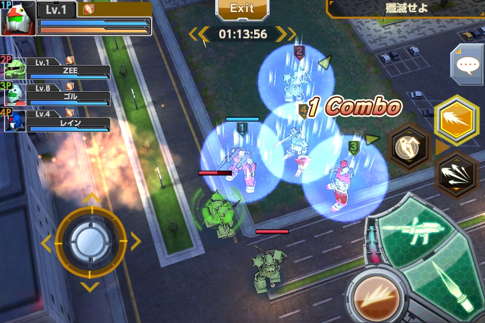 遊戲中玩家可進行最多 4 人的共同協力戰鬥。戰鬥採用了在「鋼彈」遊戲中罕見的鳥瞰視點,玩家可用性能不同的各種機體來戰鬥。靈活運用攻擊、加速等技能來取得勝利吧。