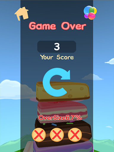大多時候,善用遊戲提供的好功能,才是屢創新高紀錄的關鍵,例如完美的快閃鬼影,會顯示出前一個甜點的正確大小讓玩家方便比對;又例如叉子功能,可以將疊了卻不滿意大小的甜點給叉走,當作沒這回事。只要玩家不要太意氣用事,應該都可以創出不錯的疊高成績。