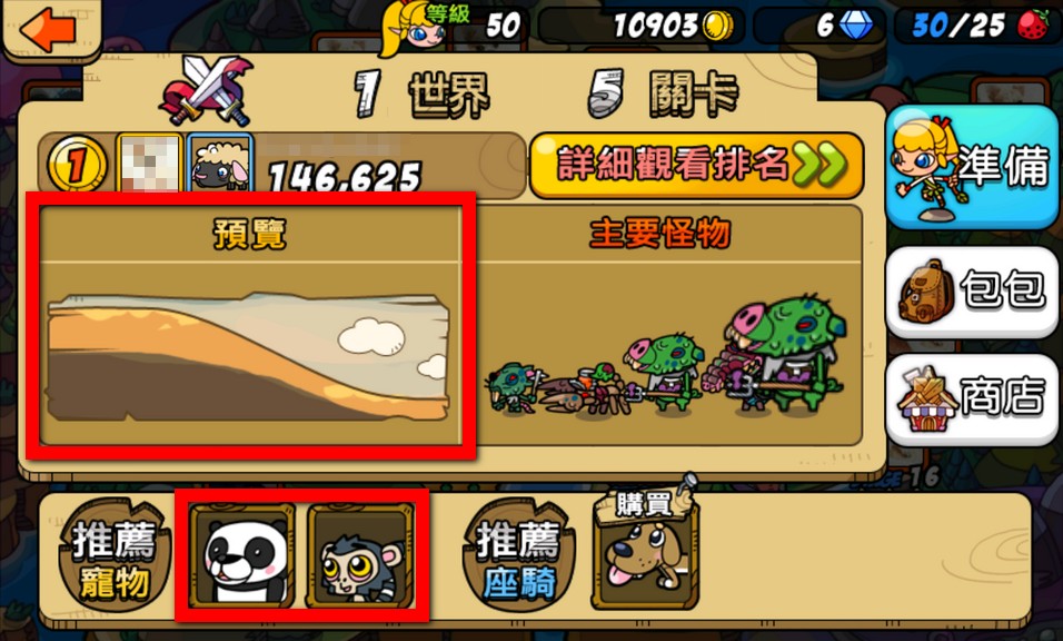 在進入關卡準備戰鬥時,首先玩家會先在準備畫面看到此關的地形、怪物以及推薦的寵物,在還不熟悉各種地形與怪物該如何搭配寵物的同時,千萬別忘了要看頁面的提醒,才能夠挑選合適的寵物。