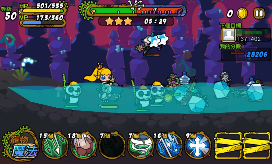 倘若碰到水面的地形,則可選擇「暴風雪」,當敵人經過水面時,就會被凍結在水裡無法動彈,能夠為進攻的寵物們爭取到攻擊時間。