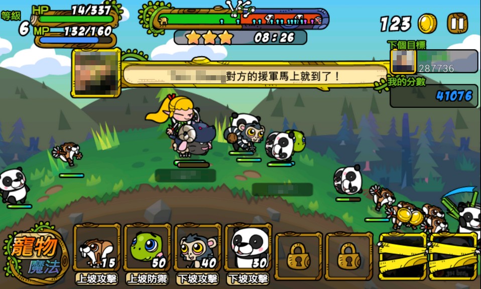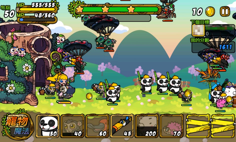 例如熊貓圓仔適合下坡地形,而烏龜傑尼則是適合上坡防禦,不過要特別注意的是,每隻寵物所需要的召喚能量都不同,若是想要順利的召喚出每個寵物,就要注意本身所擁有的召喚能量是否足夠唷!