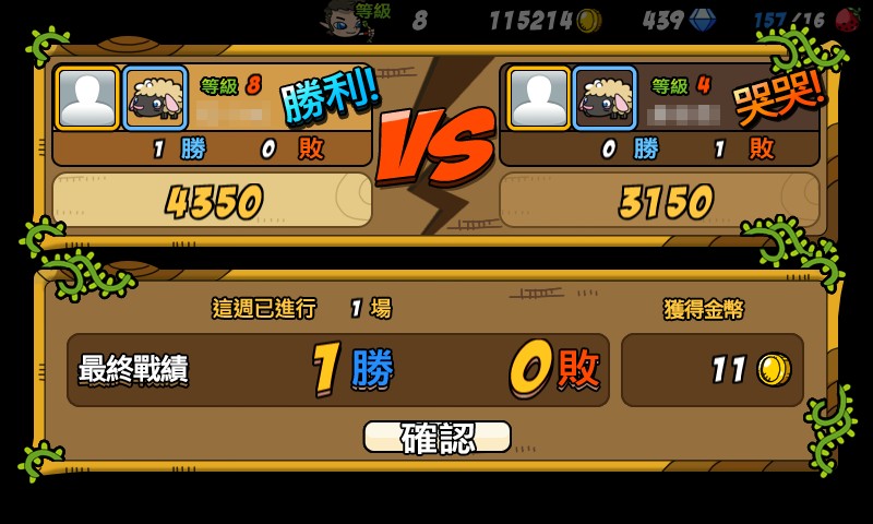 玩家在進行 1 : 1 對戰模式時,可以隨意挑選任一朋友進行 PK。當好友收到訊息時,將可在時間限定內對抗遊戲內的怪物,最後將以兩方所獲得的分數作為評比,只要獲得勝利將會有金幣作為獎勵。